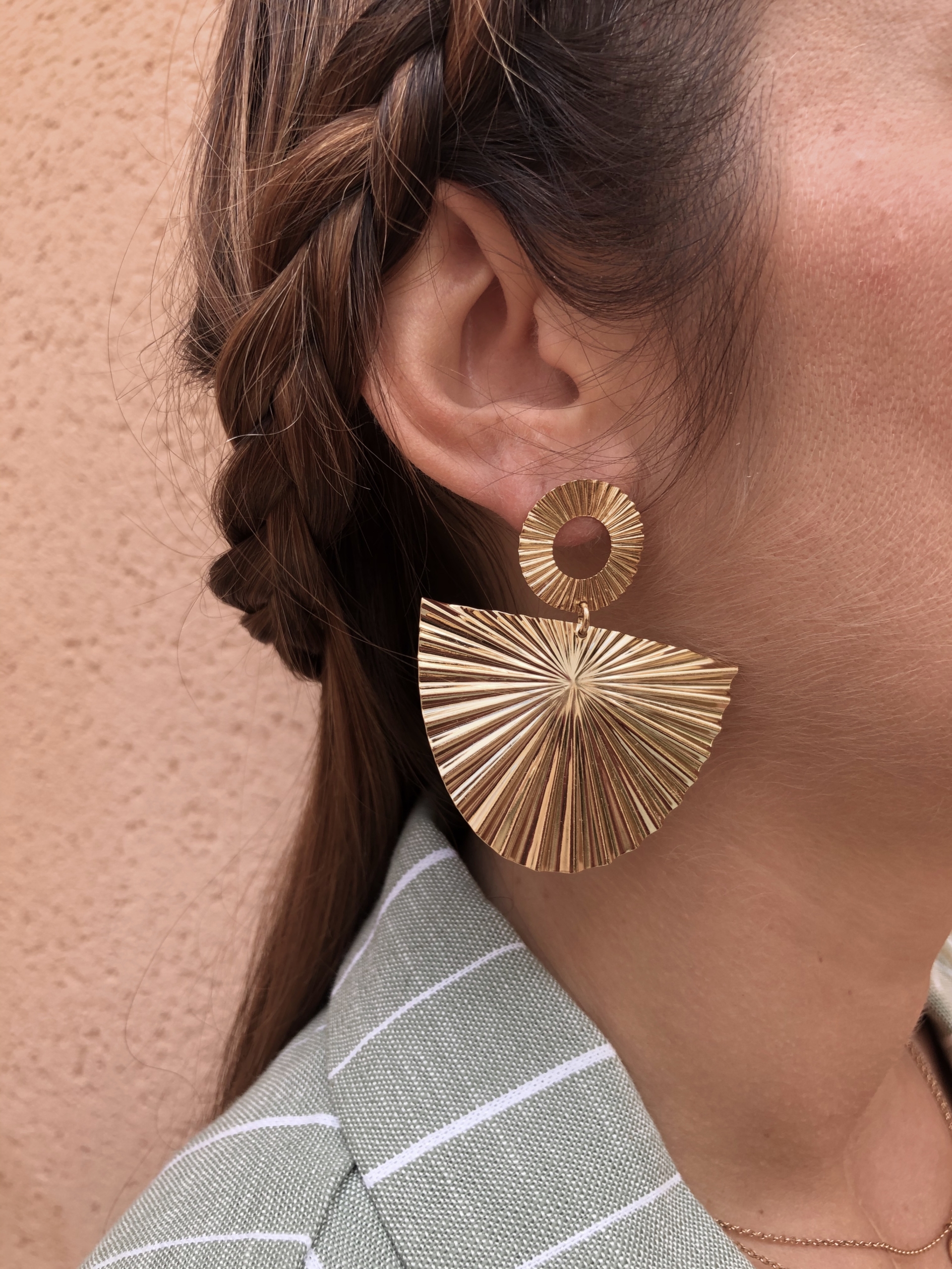 Paire de boucle d’oreille dorée à l’or fin 24 k. Qualité premium.